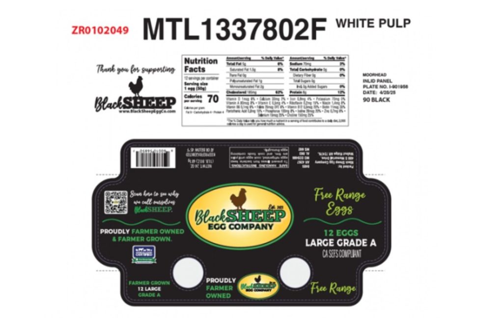 An example of a Black Sheep Egg Company label for recalled eggs (FDA)